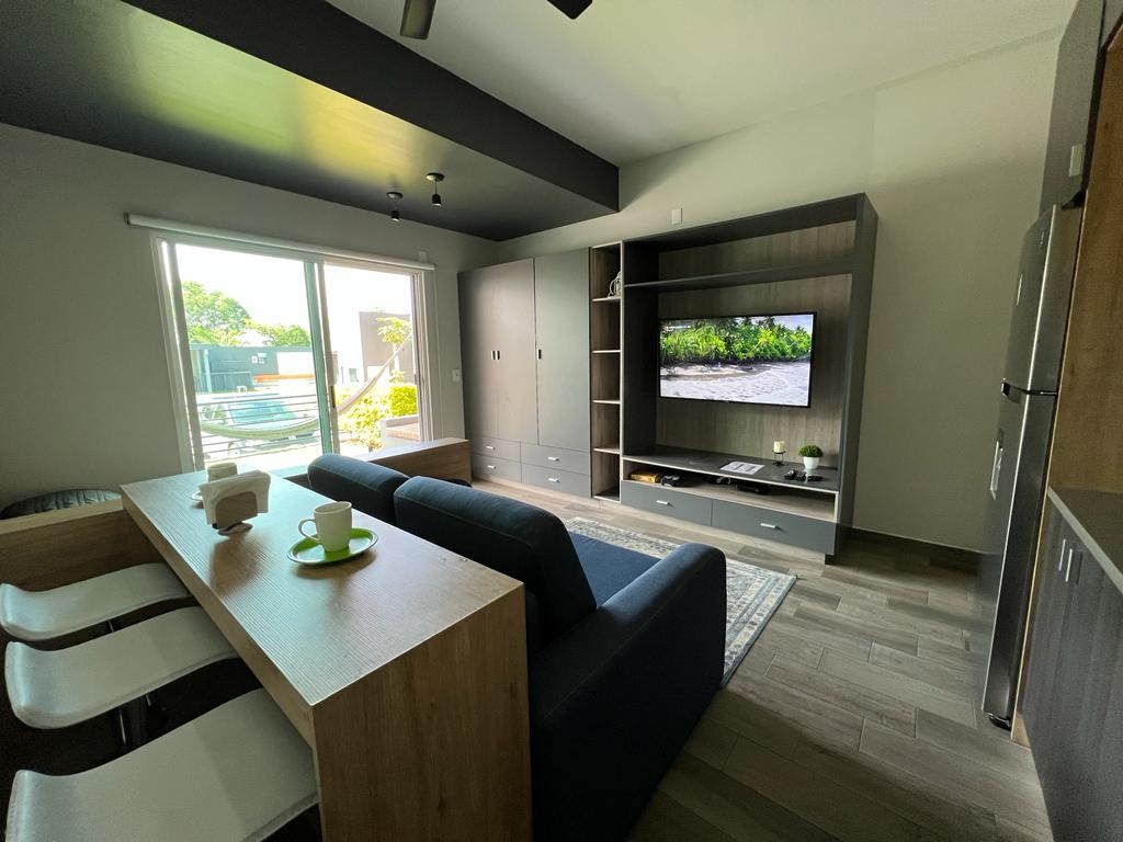 Moderan studio u Oaxtepec Morelos-u, idealan za nekoliko dana provedenih sa partnerom, porodicom ili prijateljima. Pozivamo vas da uživate u mirnom boravku sa svim sadržajima i pažnjom koja vam je potrebna za opuštanje. Prostor je dizajniran i pripremljen s ljubavlju prema vašem dolasku, ima 1 spavaću sobu, privatno kupatilo, Smart TV, terasu, roštilj, opremljenu čajnu kuhinju, dnevnu sobu i trpezariju, pored uživanja u bazenima, teretani, krovu, jacuzziju i još mnogo toga. Uopšte nećete morati da izađete, dobrodošli!