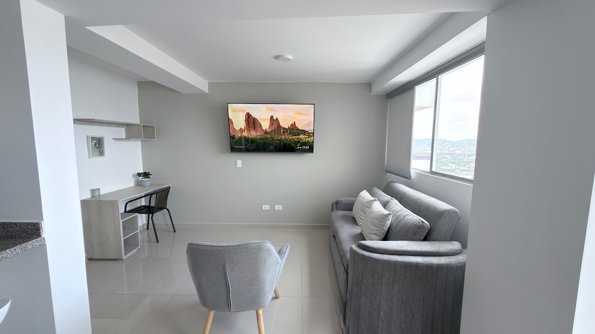 Uživajte u mirnom boravku u ovom modernom jednosobnom stanu, idealnom za rukovodioce, parove, turiste ili prolaznike. Smješteni nekoliko minuta od tržnog centra Unicentro, imaćete brz pristup supermarketima, restoranima, bankama i prevozu. ✅spavaća soba s bračnim krevetom i klima-uređajem ✅Privatno kupatilo ✅soba sa TV-om od 40inča i svjetlovodnim Wi-Fi mrežom ✅ - Opremljena kuhinja ✅ Mašina za veš na terasi ✅ Privatna terasa, ✅ Nadstrešnica za motocikl ✅ Dozvoljeni kućni ljubimci