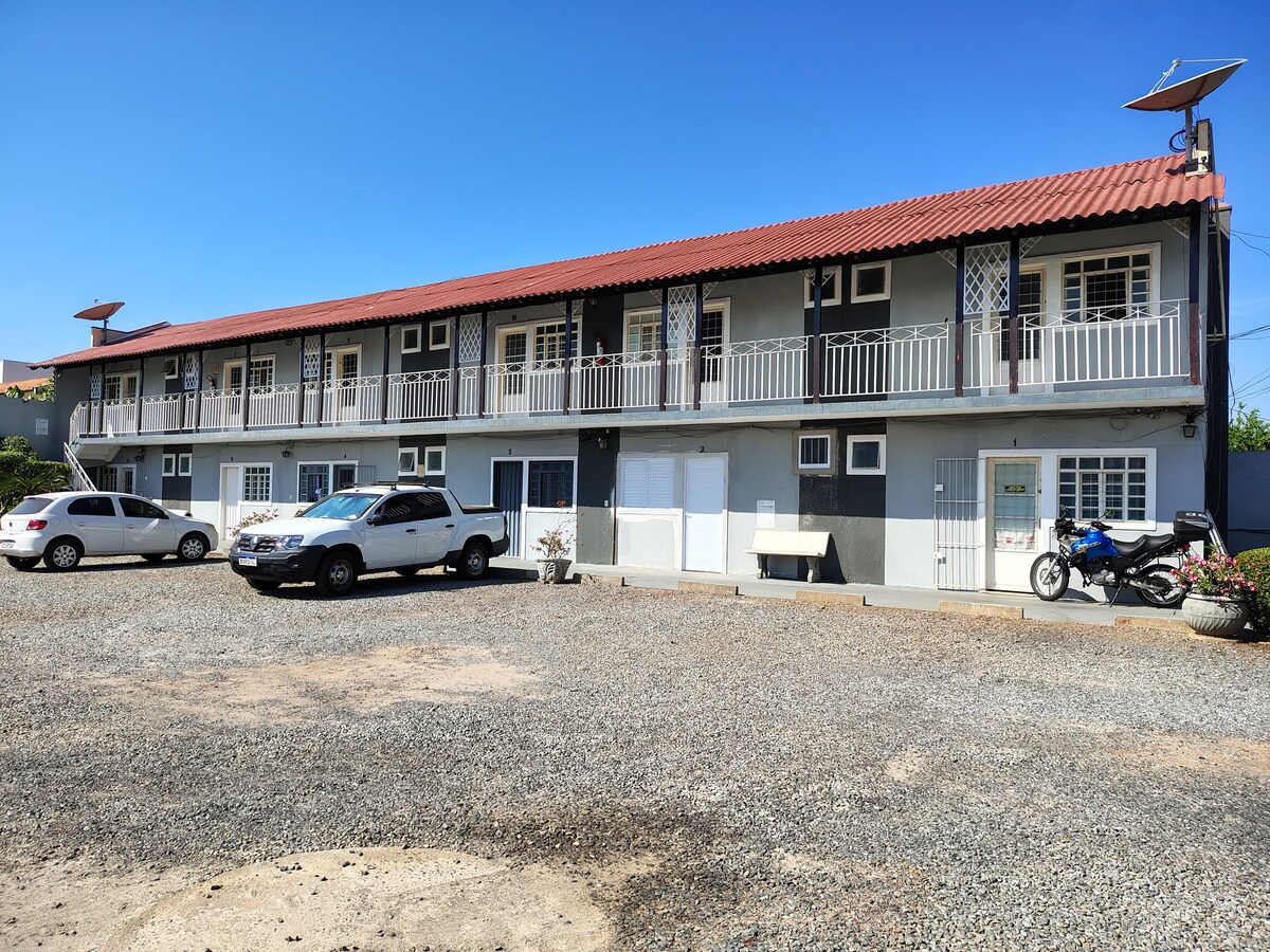 Udoban studio apartman u prizemlju sa: aC wi-Fi TV kuhinja opremljena Idealno za najviše 2 osobe Posteljina i peškiri kupatilo je obezbijeđeno * Smart Fit Academy je udaljena 800 metara, imamo i restorane i obližnje lokalne prodavnice Neke udaljenosti: Generalna komanda vojne policije 850 miliona Bolnica za rak, 1,2 km Glavno mjesto Foruma od 3,0 km 3,3 km Centro Politico Administrativo Šoping Pantanal od 4,7 km