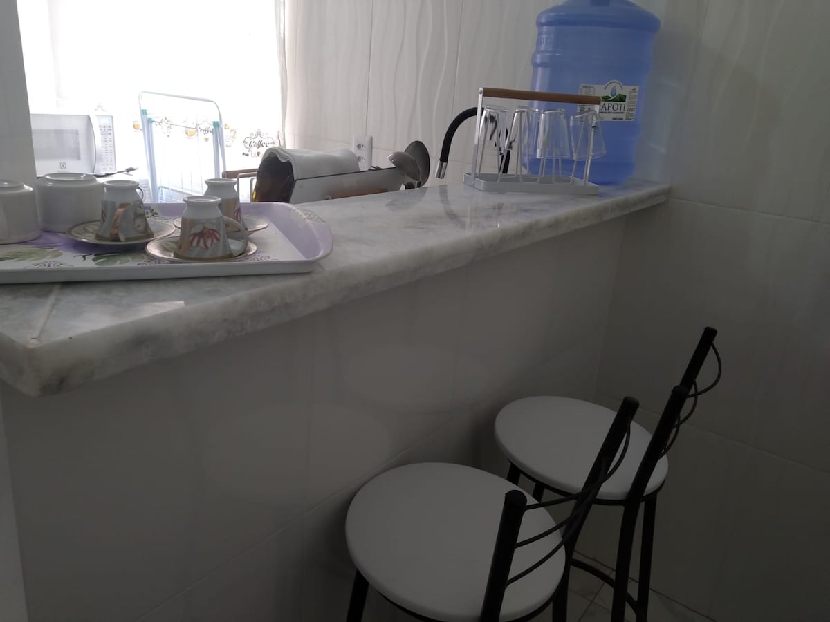 Udoban komplet sa minibarom, mikrotalasnom rernom, trpezarijom, bračnim krevetom (sa dodatnim dušekom), visećom mrežom, klima-uređajem, velikim prozorom (sa prelepim laganim ulazom), Wi-Fi mrežom i mnogo ljubavi. Udaljen je samo nekoliko koraka od apoteke, pekare, pijaca i samo 1,5 km od jednog od najboljih tržnih centara u gradu; tržni centar 3 americas. Jedna je od najvećih avenija u Kujadi, lako dostupna.