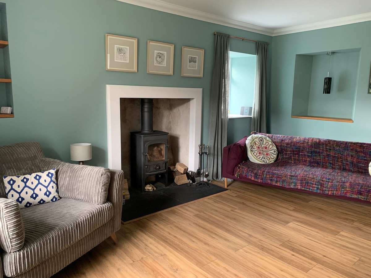 Mirna seoska kuća u Hantliju, izvan glavnih ulica, ali na laganoj pješačkoj udaljenosti od železničke stanice i centra grada. U udobnom dnevnom boravku postoji efikasan šporet na drva, a po dolasku ćete naći korpu sa drvetom. Kuhinja se nalazi iza zgrade sa pristupom maloj, zatvorenoj bašti koja je savršena za spor doručak na suncu ili večernje piće na travnjaku. Kupatilo je dostupno stepenicama na spratu. Jedva čekamo da vas ugostimo!