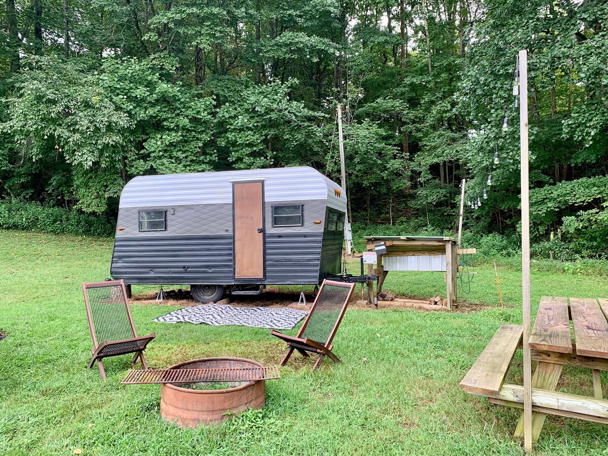 Udoban vintidž Airstream, strana potoka, odmaralište na otvorenom