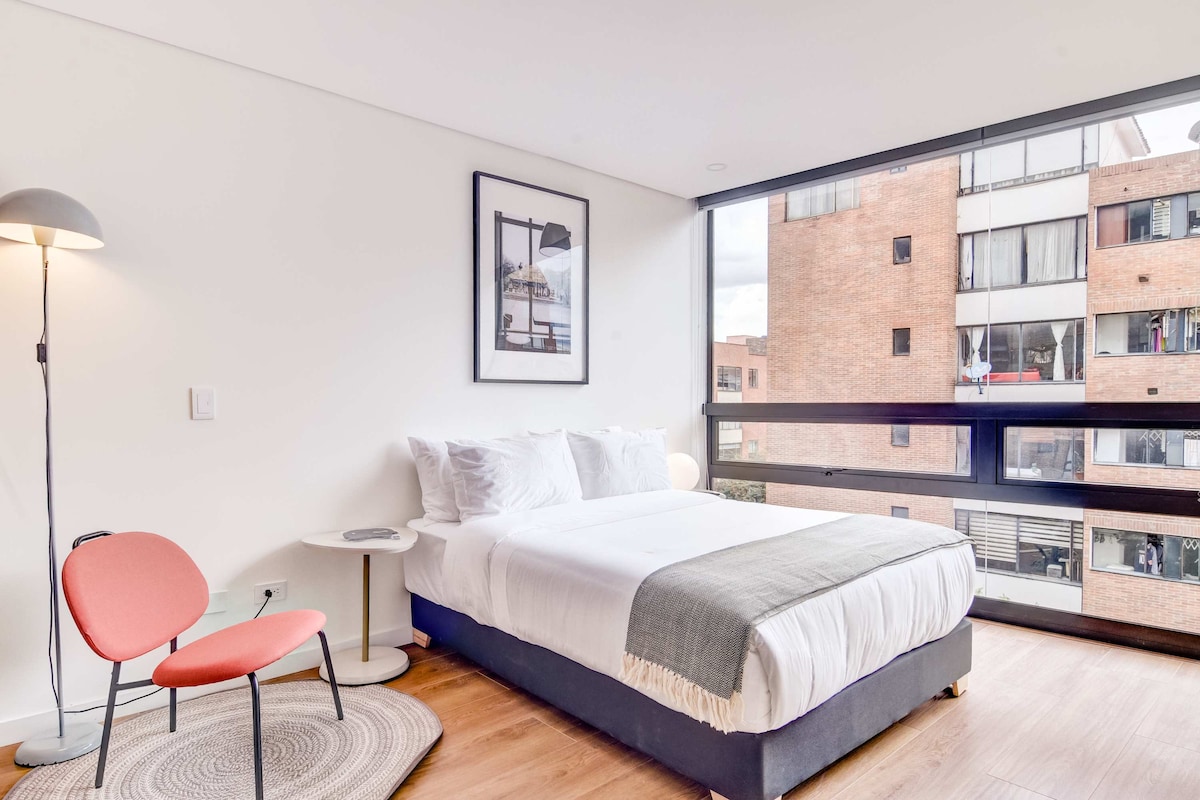 Ovaj stan se nalazi u smještaju s više stambenih jedinica u aparthotelu, a fotografije su referenca. Stvarni stan može biti na drugom spratu ili imati drugačiji pogled. Nalazi se u najboljem dijelu Bogote. Idealno za poslovna putovanja, porodice i grupe prijatelja koji žele da borave u prostranom modernom potkrovlju. Stan ima bračni krevet i sef.