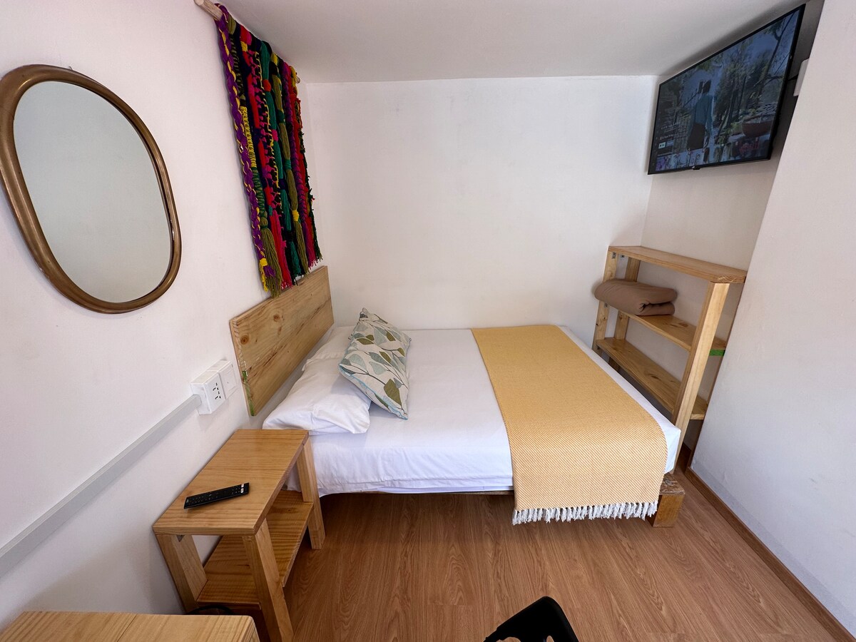 Tražite lijepu, jeftinu sobu? Imamo za vas ovu veoma dobro osvetljenu sobu, privatno kupatilo sa toplom vodom 24 sata dnevno, brzim Wi-Fi mrežom, veoma udobnim krevetom i radnim stolom za rad na daljinu i za TV od 81cm sa kablovskom za uživanje u serijama i filmovima, a uključuje i peškire i sapun. Naša lokacija je savršena u odnosu na aerodrom i autobusku stanicu. Udaljeni smo oko 13 blokova od glavnog trga i 10 minuta taksijem.