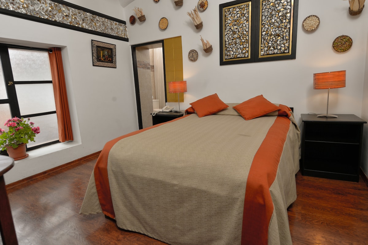 Predivna soba u hotelu „CASA CRISTOBAL Siete QUARTONES CASONA COLONIAL”, udaljeni smo 2 bloka od trga Plaza de Armas, blizu svega. Soba ima moderno privatno kupatilo sa veoma toplom vodom 24 sata (25 m2), brzi internet, Smart TV sa Netflix-om i Disney +, 24-satnu pažnju, čišćenje i dnevnu promjenu peškira. - BESPLATNO odlaganje prtljaga - NE UKLJUČUJE DORUČAK Mirno i tiho mjesto. Imamo EULALIO kafić sa drugim jelovnikom.