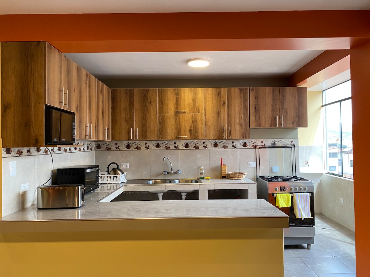 Uživajte u našem modernom i udobnom stanu koji se nalazi u centru Kuska. Uključuje prostranu sobu, potpuno opremljenu sobu + čajnu kuhinju i kupatilo. Nalazi se 900 metara od trga Plaza de Armas (10 minuta hoda) i samo 400 metara od pijace San Blas (5 minuta). Moguće je preuzimanje i dovoženje od/do aerodroma, pružamo i kontakte agencije za garanciju i uslugu čuvanja prtljaga.