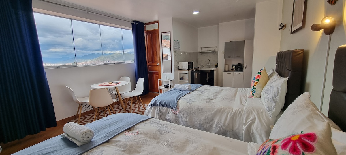 Potpuno namještena moderna garsonjera sa svim udobnostima i privatnošću doma, sa panoramskim pogledom na prelepi Kusko. Jedinica je potpuno opremljena vratima i prozorima bez zvuka, teško izolovanim zidovima za dodatnu toplinu, zavjesama za zamračivanje, dosljednom toplom vodom na gas, jakim bežičnim internetom i pametnim TV-om (Netflix je uključen) kako bi se obezbijedio kvalitetan životni doživljaj. Do istorijskog centra potrebno je samo 10-15 minuta hoda. Sistem unutrašnjeg grejanja je takođe dostupan uz dodatne troškove.