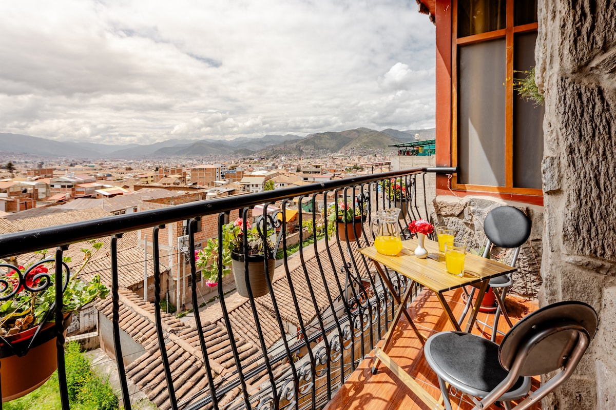 Cute Apartment with a beautiful view of Cusco. Located in the traditional neighborhood of San Blas,it's an ideal spot for couple-family. Righ here family-friendly activities, nightlife, interesting museums,lovely churches.We're just 10 min from the main square. You’ll love our space due to location, the comfy bed, the coziness,amazing view,home feeling.We can offer you AIRPORT PICKUP & TRANSFER,besides we also count with a reliable TRAVEL AGENCY with professional staff