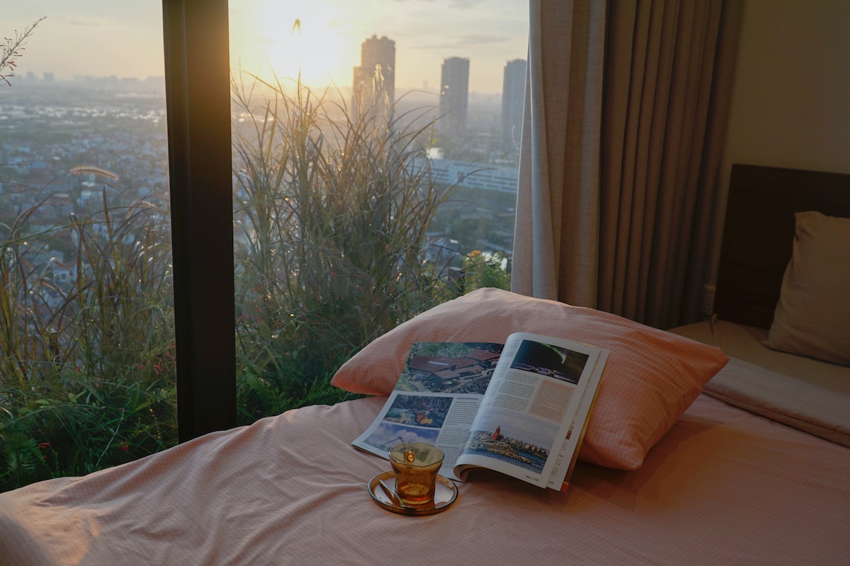 Centralno smješten je srce eko parka, uživajte u svježoj mirnoj atmosferi sa parkom na hiljade zelenila. Stan se nalazi u oblasti Landmark Onsen preko puta parka Labud Lejk, pogodan za dugoročne turiste koji se mogu opustiti i raditi na daljinu. Stan je pun Wi-Fi mreže, Netflix-a, besplatne teretane, prostora za igru za djecu, ceremonije čaja, teretane, beskonačnog bazena... u skladu sa standardima sa 5 zvjezdica. Besplatno čišćenje 1 put sedmično za dugoročne goste.