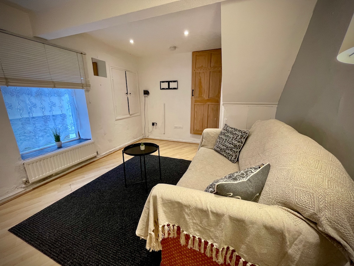 Nasuprot dvorca Caerphilly. Samostalni privatni aneks, velika soba, sa pogledom na baštu. Tuš kabina u apartmanu + WC, 2 kreveta za jednu osobu, brzi Wi-Fi. Visoki plafon. Koristite baštu, prenosni klima uređaj Lako je pronaći lokaciju, parking na ulici, centar grada i supermarket, Centar za posetioce, pabovi i restorani. Uber Ride /Delivery, 2 železničke stanice i autobuske linije. Park i sportsko polje za PT, teretana na otvorenom,teniski teren, mirno područje . Voz za Kardif 25 minuta svakih 30 minuta hoda po pošti