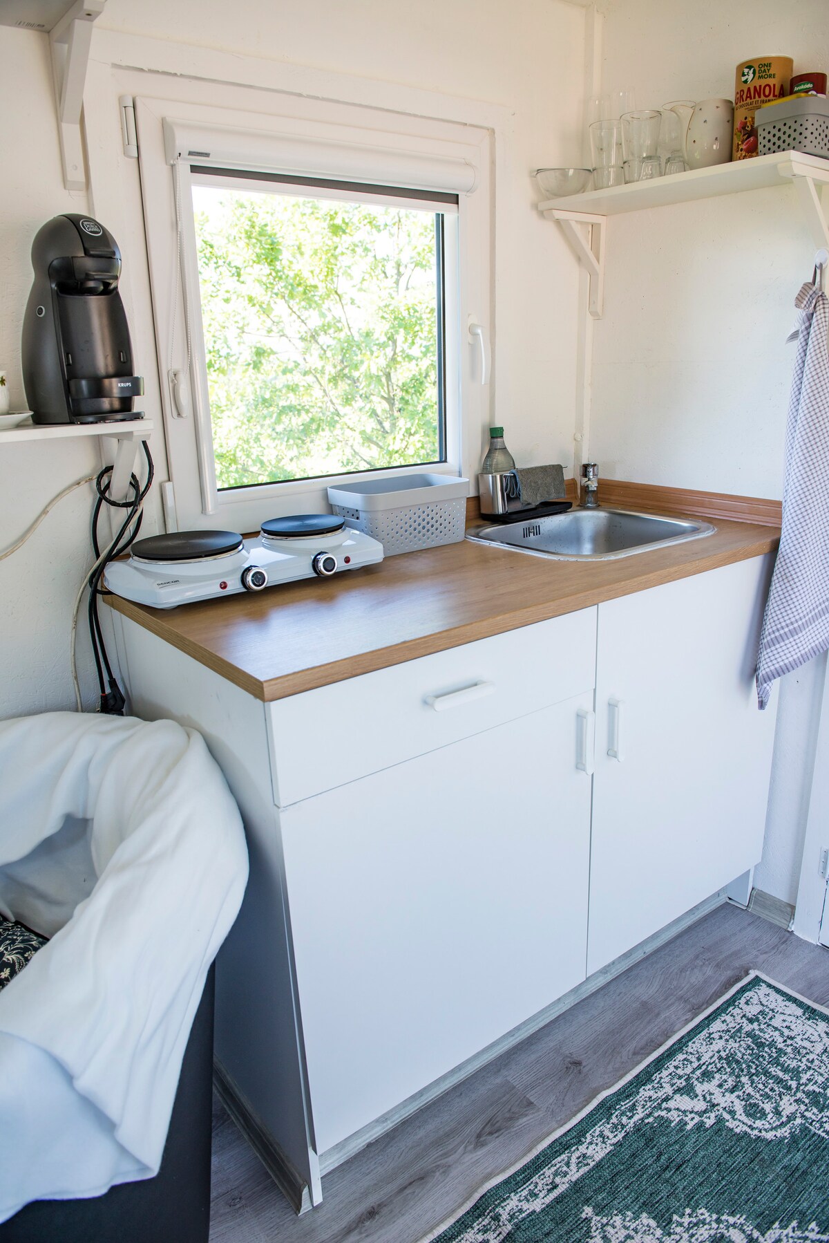 Naša maringotka, u kojoj smo nekada živeli, sada traži nove avanturiste u voćnjaku u Železnim planinama. Vozilo sa nepogrešivim mirisom koje se lagano ljulja na vetru kao na brodu. Parkiran u ograđenom prostoru sa ovcama i pčelama. Ako želite da vidite da je na nebu noću više zvezda nego što ima zrna peska u svim morima sveta, a ujutru da umočite noge u rosu, zavolećete je.
