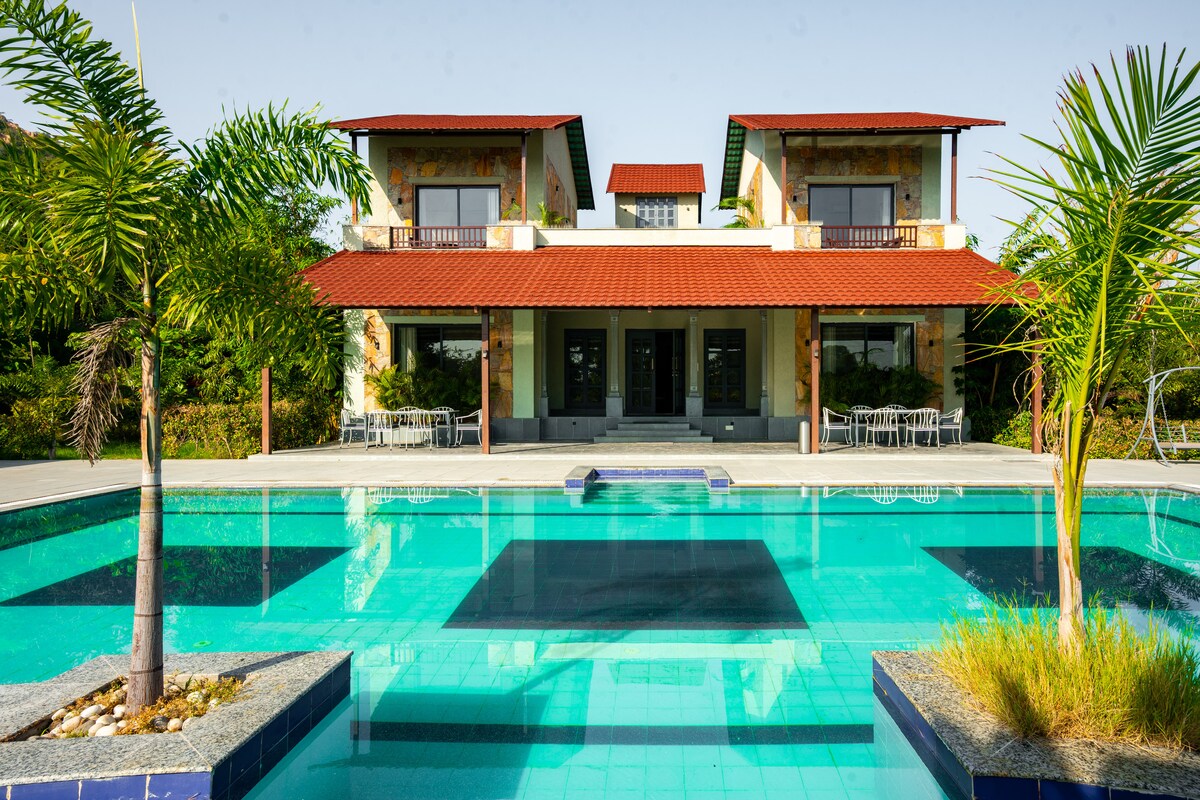 Vila sa 3 spavaće sobe, bazenom, baštom, barom i pogledom na Aravali