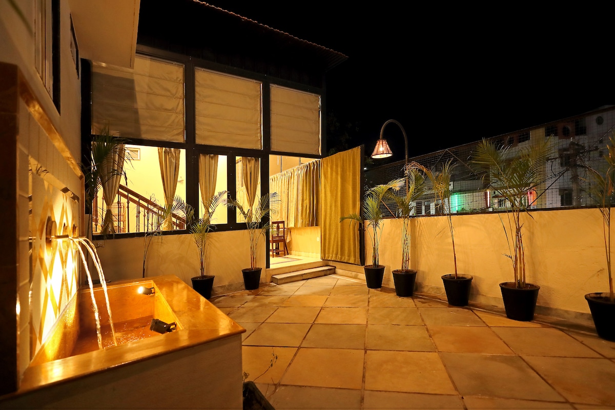 Golden Glow: Premium 1BHK Penthouse with Bathtub