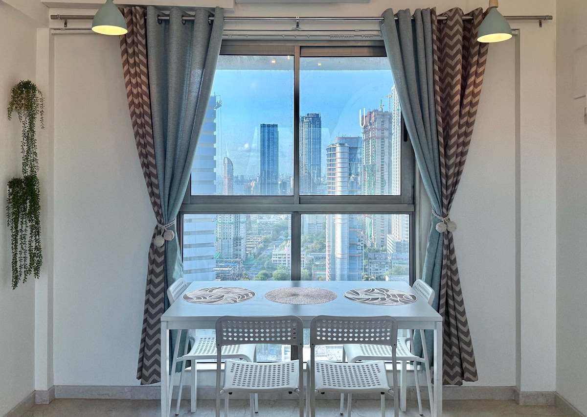 Uživajte u boravku u smještaju SoBo Bliss🌟 smještaj kategorije Luxe na jednoj od najtraženijih lokacija u Mumbaju - Vorli! S pogledom na more s mirnim pogledom na zalazak sunca i svjetlucavim horizontom grada, ovaj pažljivo uređeni prostor udaljen je svega nekoliko minuta od trkališta Mahalaxmi, tržnog centra Paladium i nudi jednostavan pristup Nariman Pointu i aerodromu putem obalnog puta. Bez obzira na to da li ste u gradu poslovno, u slobodno vrijeme ili na muzičkom događaju, ovaj zadivljujući smještaj s pogledom na okean obećava udobnost, šarm i pristup najboljem što nudi Bombae !!