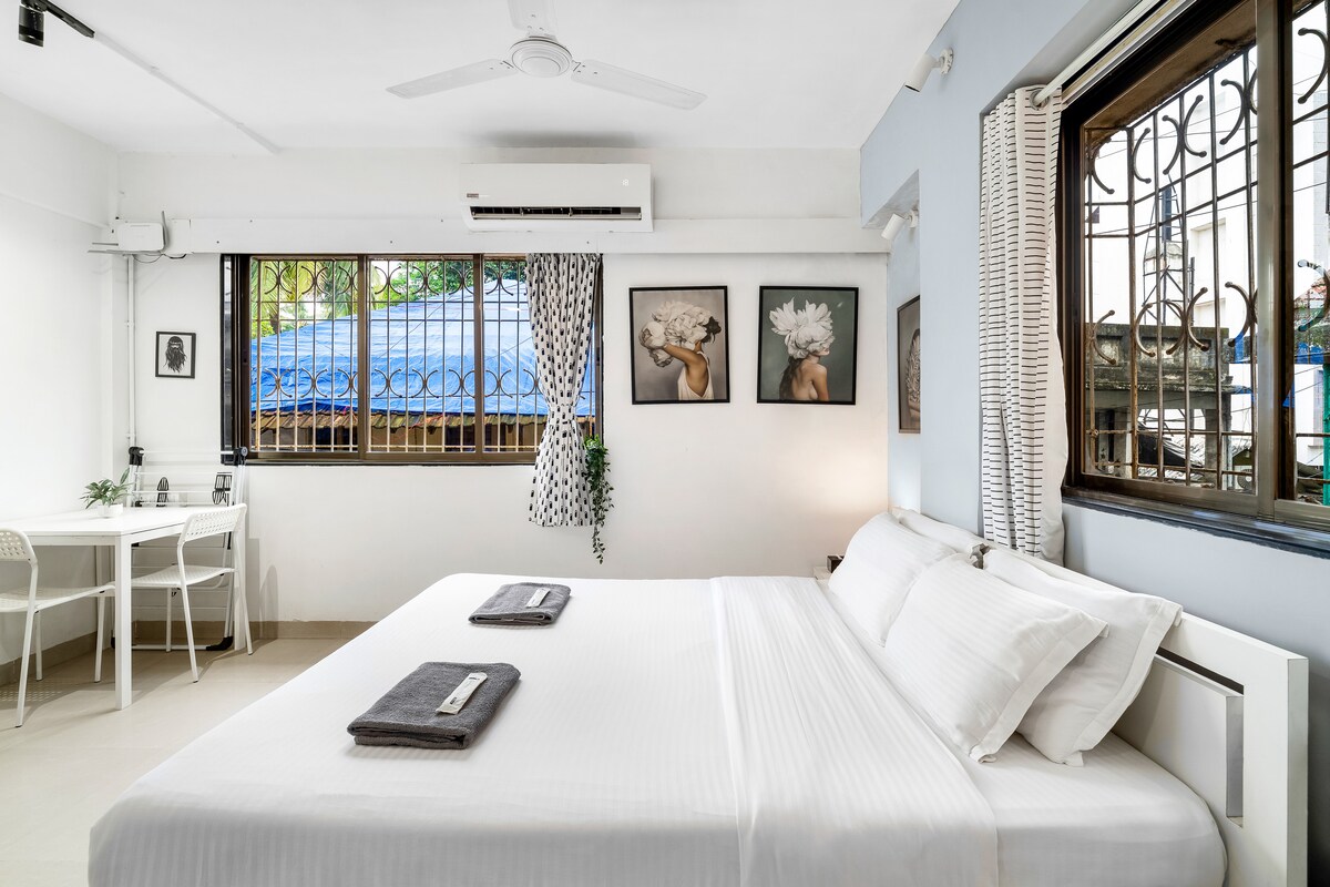 Dobro došli u Viktoriju! Naš šarmantni studio apartman koji se nalazi u zapadnom dijelu četvrti Bandra, u srcu užurbanog grada, nudi i praktičnost i mir. Smješten u jednoj od najšarmantnijih četvrti Mumbaija, ovaj privatni studio apartman nudi savršenu ravnotežu mira i gradske vreve. Izađite napolje i naći ćete se okruženi zelenim stazama, neobičnim kafićima i nekim od najomiljenijih mesta u Bandri – Subko Coffee, Mokai, Veronica's i mnogim drugim, a BKC je udaljen samo 15 minuta vožnje.
