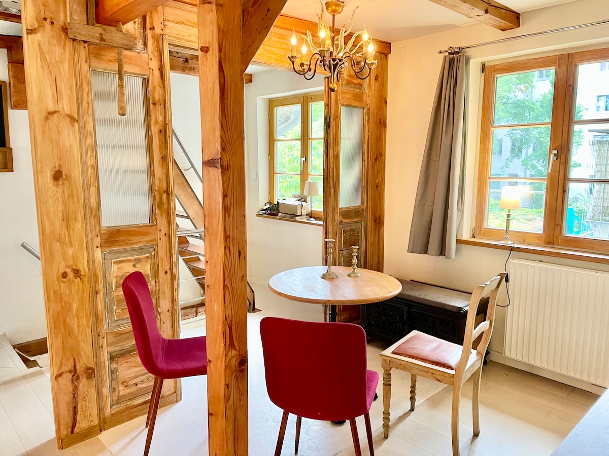 Moin Moin in Hamburg, Hier wohnst du zentral im trendy Karolinenviertel mit schönen Altbauten, Restaurants, funky Läden in einem außergewöhnlichen Schmuckstück: Das romantische Terrassen-Haus von 1842 ist ein Unikat. Privatsphäre Apartment mit eigenem Eingang im ruhigen Garten. Mach es dir gemütlich auf der Terrasse oder im Winter am Kamin. EASY CHECK-IN: ab 14:00 24/7: Top W-LAN & Workplace. U-Bahn+Messehallen 200 m Parkplatz in 2 Min:Feldstrasse 5€/24 Stunden Adults only