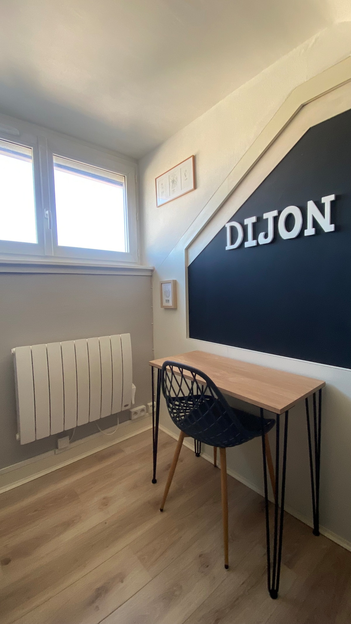 Bienvenue à Dijon, je propose en location un studio/T1 (26m2) rénové dans une petite rue calme, tout en étant proche de la gare, du centre ville, de la cité de la gastronomie et du jardin botanique de l'arquebuse. Vous trouverez un espace cuisine - salon- salle à manger ; un espace nuit isolé par deux portes coulissantes et une salle de bain attenante avec douche. Il est idéal pour 2 personnes mais peut accueillir jusqu'à 4 couchages avec le canapé convertible du salon en complément.