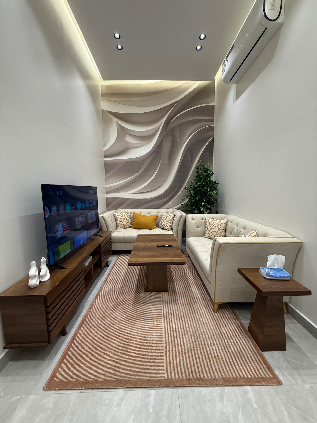 📍 Centralni studio za odmor – Al Taif, ulica Šihar . 🏙️ Nalazi se u srcu Al Taifa u blizini ulice Šihar. . 🛏️ Udoban moderan studio sa opuštajućom atmosferom. . 👑 Veliki bračni krevet (king size) za vrhunsku udobnost. . 📺 65-inčni pametni TV za filmove i strimovanje. . ☕ Mini kuhinja sa modernim barom za kafu. . ⚡ Brza internet veza. . ✨ Elegantan dizajn i toplo osvetljenje. . 🌿 Privatni spoljni prostor za opuštanje i uživanje. . 💫 Savršeno za samce ili parove koji traže udobnost i stil.