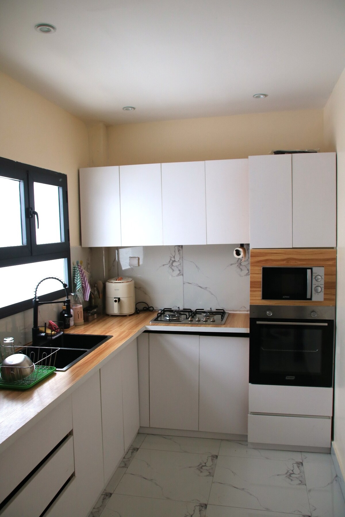 Prostrane i udobne 3 lijepo uređene spavaće sobe sa klima-uređajem u spavaćim sobama i dnevnom boravku. Topla voda u kupatilima. Porodici sa djecom će se svidjeti ovo mjesto. Čista posteljina i peškiri su zapečaćeni od preduzeća za čišćenje. Wi-Fi, mirno okruženje. Potpuno opremljena kuhinja, bilo da volite da kuvate ili vam samo treba brzi obrok, moderna kuhinja ima sve što vam je potrebno. Privatni parking, generator za neprekidno napajanje, mašina za pranje veša. Samostalna prijava s unesenim kodom.
