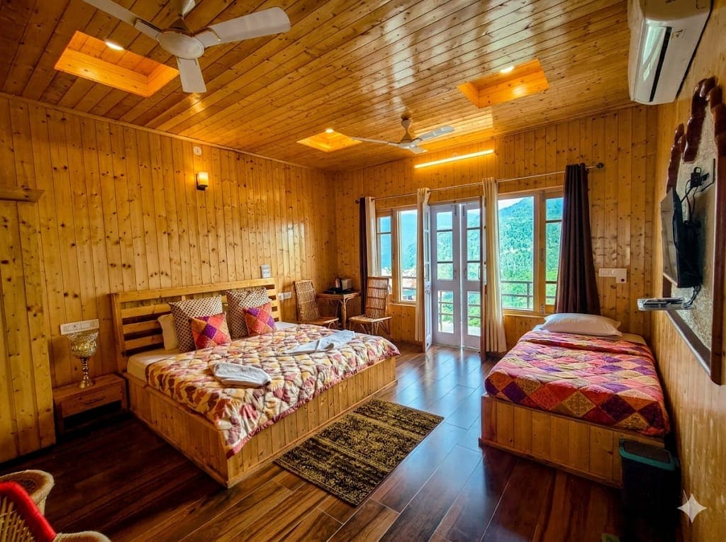 Panoramski pogledi Za one koji cijene ljepotu prirode, naše Premium sobe sa centralnim grijanjem sa privatnim balkonom i panoramskim pogledom na planinske lance Dauladhar su savršen izbor. Probudite se uz pogled na veličanstvene planine i zelene doline, dok sunce baca zlatni sjaj iznad pejzaža. Udahnite svjež planinski vazduh sa svog privatnog balkona i prepustite se miru okoline.