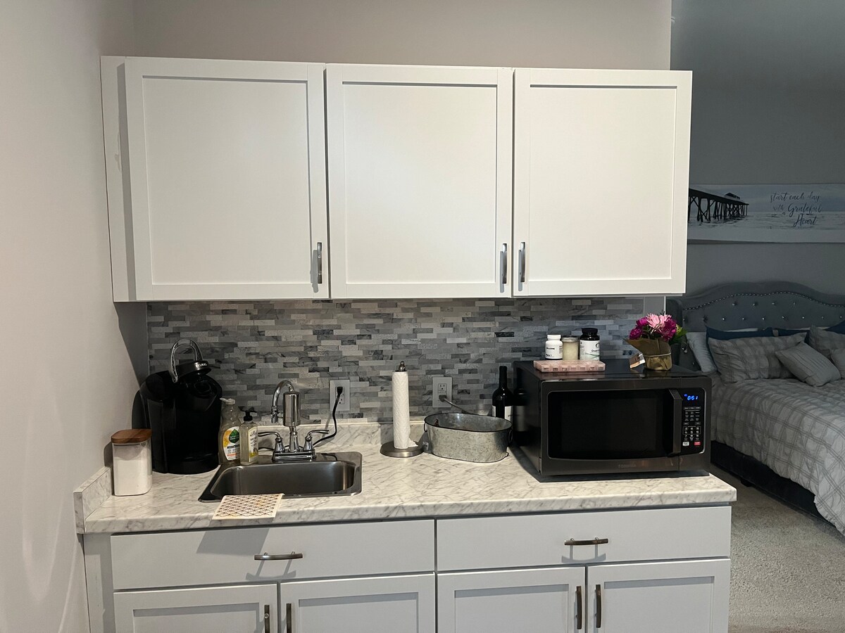 Završena soba iznad garaže u istorijskom Čarlstonu, Južna Karolina, udoban je i lep dnevni prostor sa kupatilom i kuhinjom, kao i mašinom za pranje/sušenje veša. Pogodno smešten u Smit parku, samo kilometar i po udaljen od ostrva Danijel sa prodavnicama i prodavnicama (Publix). Otprilike 20 - 25 minuta od centra Čarlstona. Ograničenja prilagođenog pristupa: ovaj prostor zahteva da se pristupi 16 koraka, a u kupatilu nema rukohvata. Bez kućnih ljubimaca, pušenja ili žurki. Dozvola #00711
