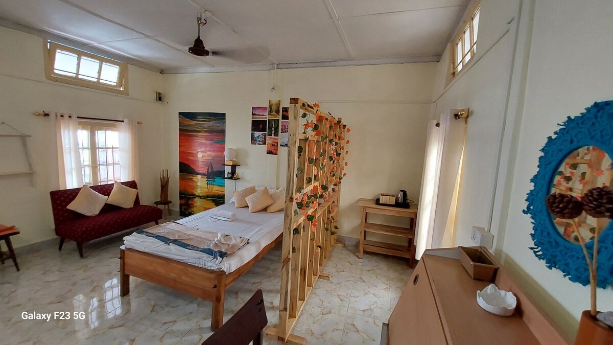 Jedina seoska kuća na vrhu brda s pogledom na Bramaputra. Savršeno za umjetnike, parove i male porodice. Poslušajte ptice tokom dana, cvrčke uveče i lisice noću. Živite u samoći prirode i još uvijek dobijate dostavu hrane putem servisa Swiggy i Zomato. 3 pravila - 1. Bez pića (Žao nam je. Imao sam veliki problem nakon što se gost napio. Otuda ovo pravilo) 2. Operite sudove nakon upotrebe. 3. Stavite smeće u priloženu kesu za smeće. Mi ćemo ga baciti.