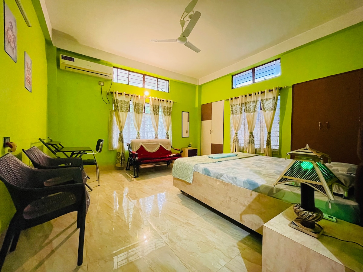 Experience Guwahati at Awesome Stay! This stylish 2BHK blends modern luxury with Assamese heritage. Relax in a sunlit living area with plush seating, a smart TV(OTTs), and games, or cook in a sleek, fully-equipped kitchen.The serene bedroom features king-size comfort and local cane furniture. Enjoy high-speed WiFi,airfryer,hairdryer and pet-friendly vibes. Includes free parking and a trusted driver for temple tours. Your cozy, safe Assam retreat awaits! Book your stay in paradise today! See you!
