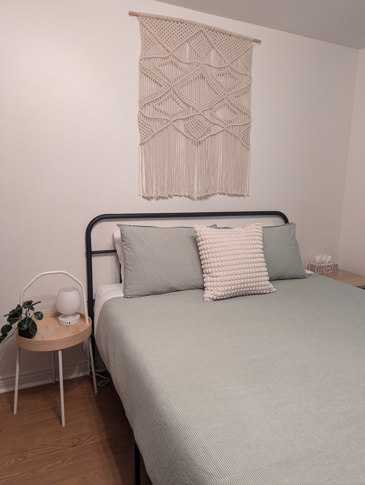 Dobro došli u Green Grove, utočište inspirisano prirodom smješteno u hotelu The Purple Haze. Ova svijetla i sunčana jedinica na drugom spratu ima umirujuće zelene zidove sa tamnozelenim okvirom, stvarajući spokojnu i umirujuću atmosferu. Uz obilje biljaka, ovaj prostor nudi miran odmor koji pruža osjećaj povezanosti s prirodom. Veliki prozori gledaju na užurbane ulice Dartmuta, pružajući vam savršen spoj opuštanja i gradske energije. - Bračni krevet (Queen) - Kauč na razvlačenje