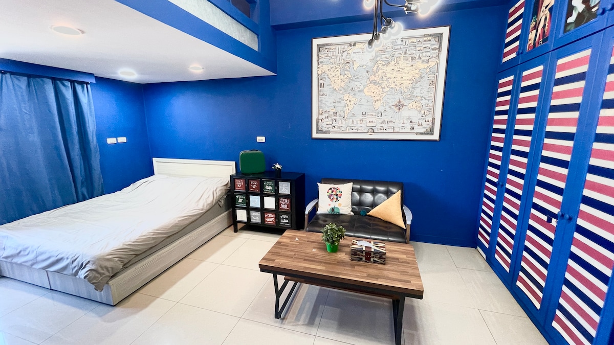 Plava engleska kuća/porodični smeštaj/bioskop/stanica Tajpej 1 minut/robna kuća King Station 2-4 osobe/smeštaj Ximending 5 minuta/direktan pristup aerodromu Taoyuan A1