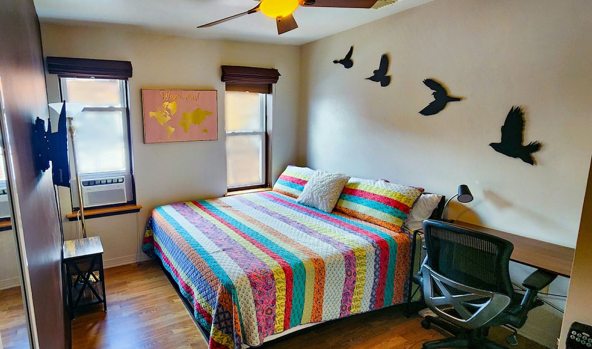 INSTANT REZERVACIJA: potrebno je 5 PRETHODNIH REZERVACIJA SA 5 *. Pranje i sušenje – 1 besplatno nedeljno; nakon toga 6 USD. Bez kućnih ljubimaca. Za „kućnog ljubimca za emocionalnu podršku“: potrebna je potvrda + osiguranje. VAŠA JEDINICA JE PRIVATNA, ALI PRISTUP JE PREKO ZAJEDNIČKOG PROSTORA. Kućni ljubimac NIKADA ne ostaje sam u smještaju. OTMJENO MJESTO: blistavo; privatno kupatilo, bračni krevet (širine 180-179 cm), radni prostor, jedinstven ambijent. Bez naknade za čišćenje (250 USD), AKO ODRŽAVATE I VRATITE ČISTU JEDINICU. 1 privatno parking mjesto MOŽDA će biti dostupno + dosta besplatnih parking mjesta na ulici. Pogledajte sljedeće odjeljke: