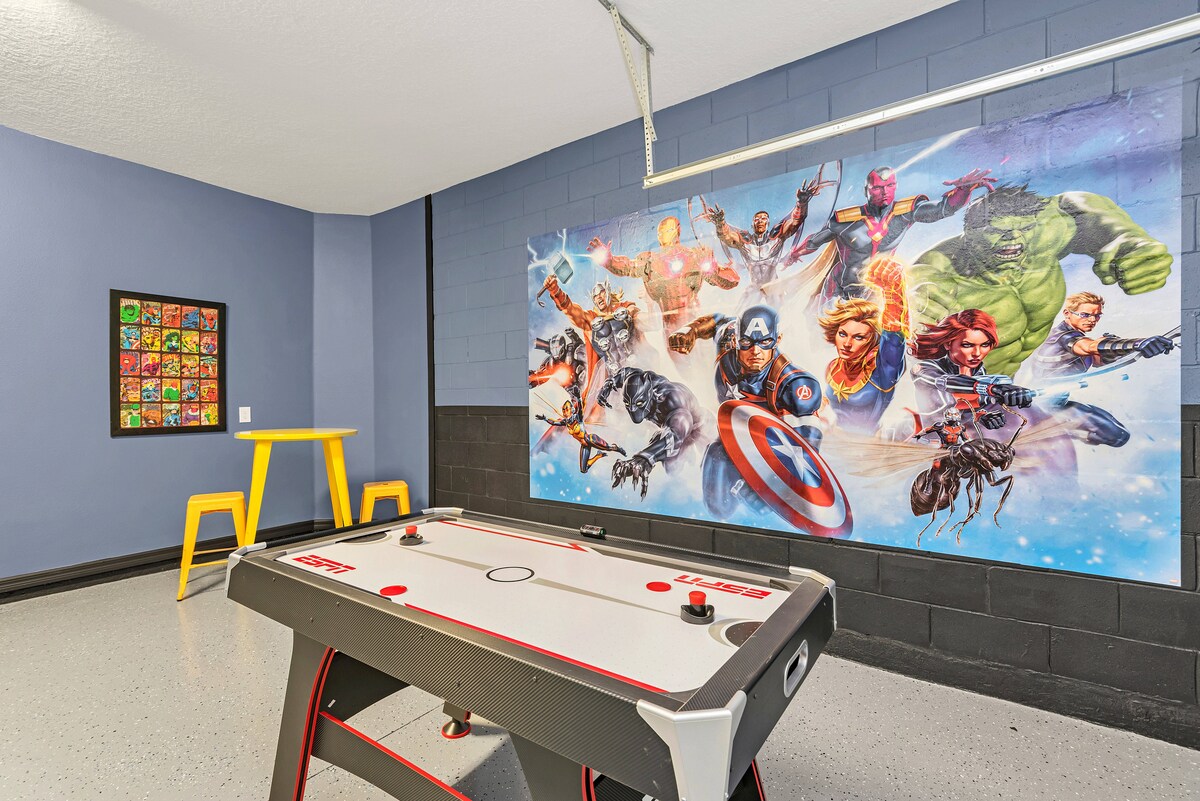 Elegantan dizajn, luksuzna udobnost i beskrajna zabava, sa prostranom terasom za bazen od 2200 stopa i kuhinjom na otvorenom, bez zadnjih komšija u prelijepoj šumi u zadivljujućem odmaralištu Reunion od 3,5 kvadratne milje. Imaćete sopstveni privatni bazen sa preljevnim spa centrom, bioskopom, bilijarom - igraonicom, 4 tematske sobe: SPOLJNI PROSTOR, MARVEL SUPERHEROJE sa TOBOGANOM, SMRZNUTE II, ORMAR HARIJA POTERA, PS5, u roku od nekoliko minuta do Diznija.