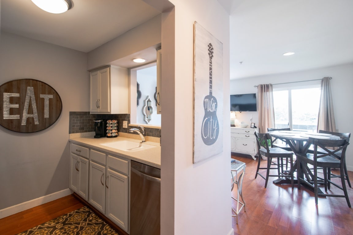 ZAPANJUJUĆI i industrijski luksuzni kondominijum sa 6 KREVETA i ogromnim staklenim garažnim vratima. Ovaj kondominijum je prikazan na brojnim fotografijama! Nalazi se u ograđenoj zajednici pod nazivom The 1865 – preuređenoj 150 godina staroj duvanskoj ambaru. Uživajte u BESPLATNOM parkingu i BAZENU sa baštenskim namještajem, roštiljem i barom. Speakeasy bar u zgradi takođe! Koristite našu teretanu i posmatrajte zvijezde na vidikovcu. Mašina za pranje/sušenje veša. Samo 2 milje do barova u centru Brodveja i 1 milju od Vanderbilta. Prošetajte 2 bloka do Starbaksa!