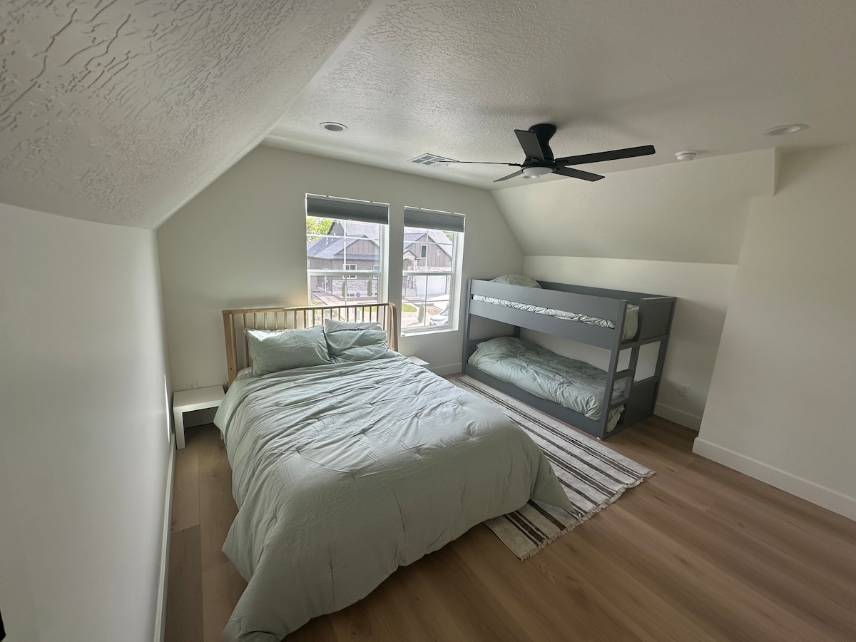 Bićete blizu svega kada odsjednete u ovom smještaju koji se nalazi u centru grada. Nedaleko ste od centra grada, aerodroma SLC, zabavnog parka Lagoon i jednostavnog pristupa autoputu. Ova kuća takođe nudi ogroman doživljaj pozorišta na ekranu za zabavu cele porodice. Spavaće sobe takođe imaju svoje pametne televizore. Za vašu informaciju: Postoje merdevine za penjanje do potkrovlja. Nema STEPENICA! Jedno mesto za parkiranje je dostupno na prilazu. Prijava nakon 16:00 Odjava je u 10:00