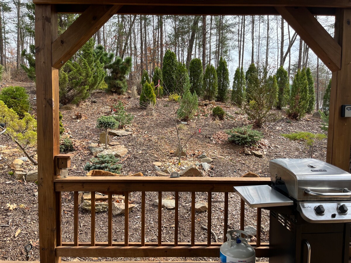 Rustikalno skrovit stan 1 BDR u prizemlju od glavne brvnare sa privatnim ulazom. SAVRŠENA lokacija za avanture na otvorenom ili ljude koji traže mir i tišinu. U blizini planinarskih staza, potoka za pastrmke, predivnih vodopada, lokalnih vinarija, antikvarnica i šarmantnih malih gradova. Kuhinja, mašina za pranje/sušenje veša, kupatilo sa tuš-kabinom. Glavna spavaća soba ima bračni krevet i ležaljku. Naš put je nekada korišćen za pristup prvom rudniku zlata u SAD (pristup na stazi za kajak Etowah)!