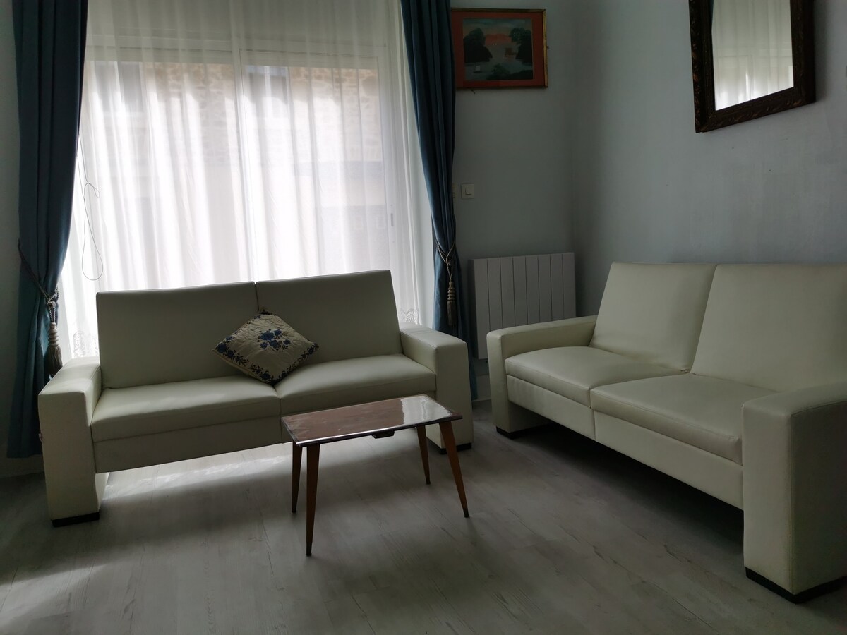 Uživajte u novoj, elegantnoj i na odličnoj lokaciji. Ovaj renovirani T2 sastoji se od spavaće sobe, dnevne sobe/trpezarije, kuhinje i tuš-kabine sa WC-om. Smješten 15 minuta hoda od katedrale, 5 minuta od stadiona možete da uživate u svim sadržajima. Radnik ili gost, imate privatni ulaz, kao i besplatan parking. Na zahtev: - Mogućnost utočišta za dva točka u zatvorenoj garaži. - Postavljanje i priprema drugog kreveta (ako su 2 odvojena kreveta).