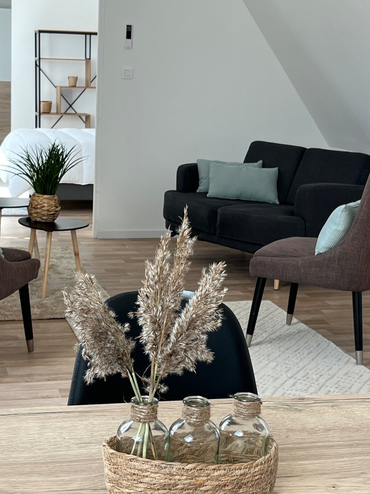 Appartement de plain-pied, confortable et fonctionnel. Cuisine entièrement équipée comprenant lave-linge, cafetière Senseo, bouilloire, plaque de cuisson électrique 4 foyers, four, micro-ondes et tout le nécessaire pour cuisiner. Espace salon avec fauteuil d’angle, table relevable et télévision connectée. Chambre avec lit 140×200, télévision connectée et serviettes fournies. Logement idéal pour un séjour professionnel, touristique ou étudiant.