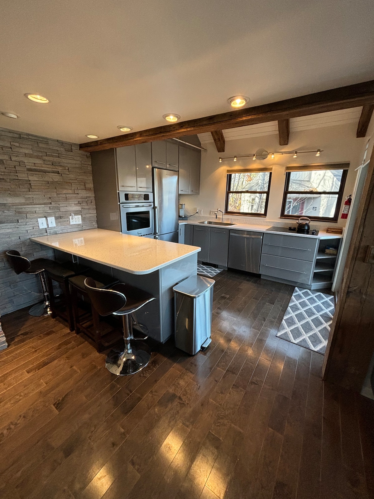 Opustite se u ovom mirnom i elegantnom prostoru. Potpuno novi, prelijepi jednosobni stan iznad odvojene garaže samo 5 milja od jezera Deep Creek. Predivno uređen prostor sa velikom kuhinjom zanatlije, neoindustrijskim krevetom od oraha veličine kralja, zidom i kapom sa zidom i poklopcem, zglobnom lampom, a sve to je napravio lokalni zanatlija. Kožni kauč na razvlačenje sa bračnim krevetom može da primi dva dodatna gosta. Opustite se pored ognjišta i slušajte ptice u šumi.