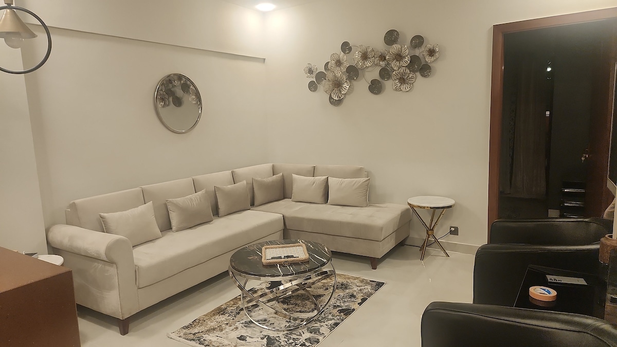 Modern 2-Bedroom Apartment in DHA Phase 8, Karachi – just steps from Luna Coffee, Creekwalk & more! Enjoy a fully furnished space with 2 beds, 2 baths, a stylish lounge/dining area, equipped kitchen, AC, smart TV, Wi-Fi, and 24/7 security. Perfect for work trips or getaways! We have one bedroom and two bedroom option available for this apartment. Regardless of whichever option you opt for you will have the whole apartment to yourself only. The whole apartment is yours!! Enjoy your stay with us!