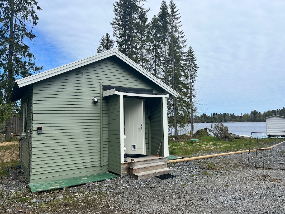 Kuća na farmi od 30 kvadratnih metara tik uz vodu u prelepom Stokšou. Gost ima celu kuću na raspolaganju. Kuća ima integrisanu kuhinju, hodnik i dnevni boravak sa pogledom na jezero. U kući se nalazi i 1 spavaća soba i 1 toalet. Wi-Fi je dostupan. U dvorištu se nalazi zasebna sauna sa tušem i WC-om. U okolini se nalazi nekoliko plaža, mesta za roštilj i lepih šumskih staza. Zimi se na jezeru nalaze skijaške staze i ledena rupa za zimsko kupanje. Idila udaljena samo oko 10 minuta vožnje od Umea.