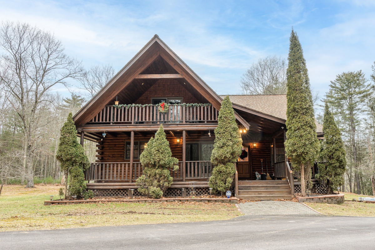 Prostrana, mirna luksuzna brvnara na vrhu Ketskilsa. Uživajte u pogledu na planine, opustite se i uživajte u hidromasažnoj kadi. Opustite se u sobi sa svodovima pored kamina uz širok izbor igara, dok drugi gledaju filmove u prizemlju. Organizujte večeru uz našu potpuno opremljenu kuhinju. Nalazi se na 20 minuta od 6 gradova. Posjetite pivare, antikvarnice, večerajte, pješačite, pecajte, igrajte golf ili se opustite. Brzi internet od 600 Mb. Savršeno za grupe, porodice, djecu i kućne ljubimce. WFH, novorođenče, prikladno za kućne ljubimce. 3 ili više noćenja dobijate sniženu cijenu