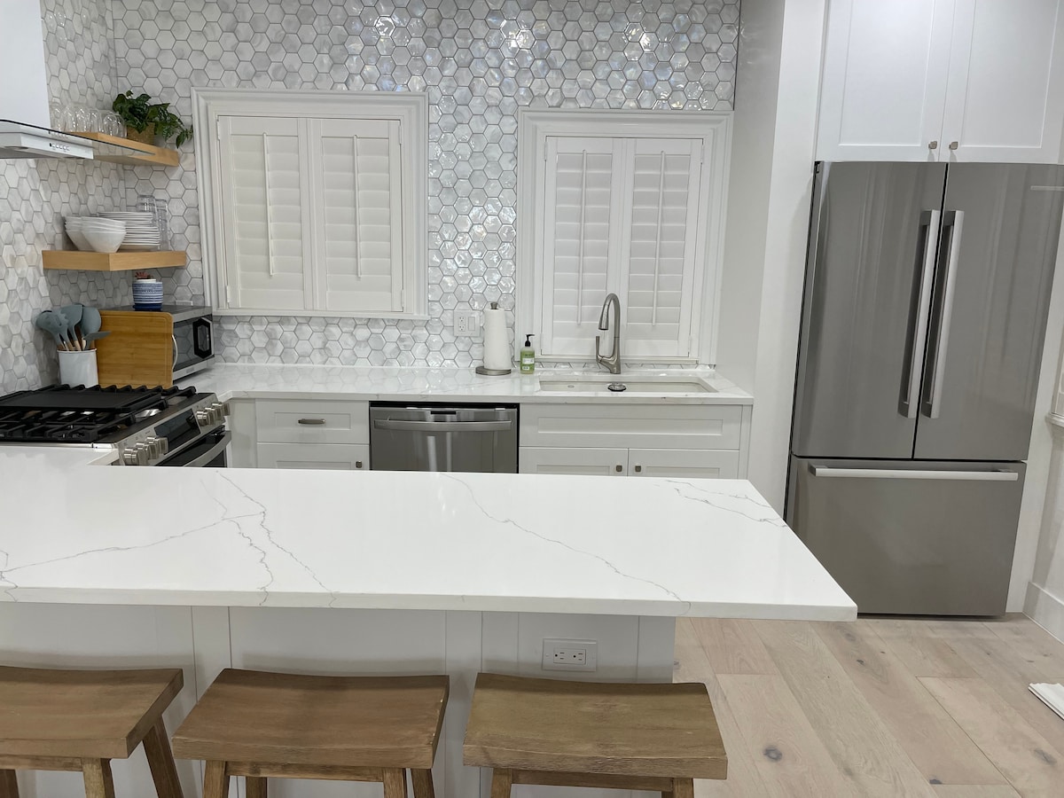 Bachelorette weekends, girls trips, family vacations — this is the house groups keep coming back to. Heated pool with in-water lounge chairs, designer coastal interior, private backyard, and a fully stocked bar cart with martini and wine glasses ready when you arrive. Sleeps 10. Walk to Publix. 5 minutes to Atlantic Ave and the beach.