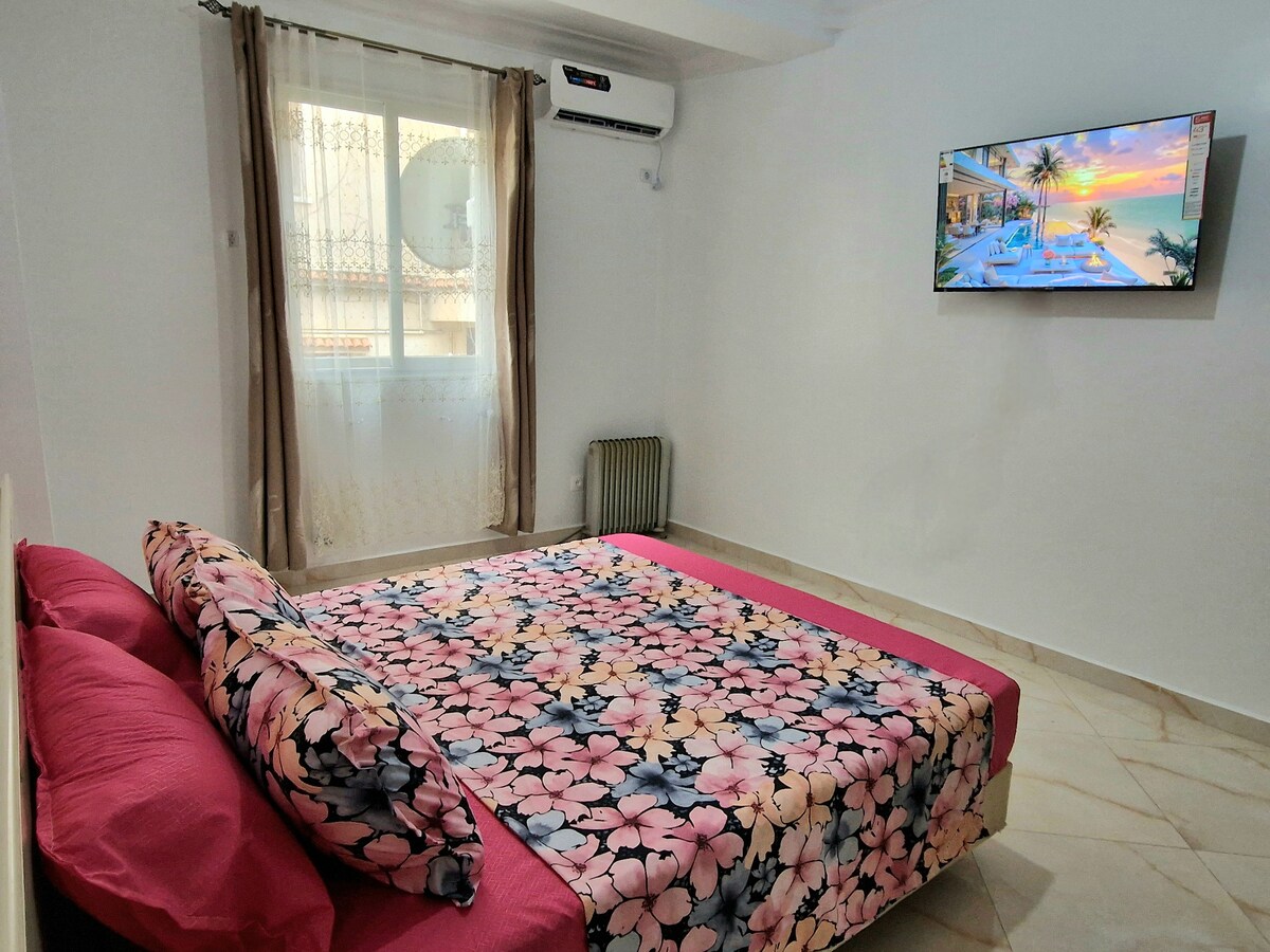 Prostran trosoban apartman u Zuaui, sa lakim pristupom centru Alžira i obali. ***Apartman na 4. spratu bez lifta*** Uživajte u svetlom dnevnom boravku, privatnoj terasi, potpuno opremljenoj kuhinji, brzom Wi-Fi-ju i bezbednom parkingu u sklopu objekta. Samostalna prijava putem digitalnog sefa za ključeve. 25 minuta do plaže Sidi Fredj, 15 minuta do tržnog centra Garden City. Prošetajte do kafića, pijaca i prodavnica za 5 minuta. Savršeno za porodice, parove ili profesionalce. Putni krevetac za bebe i dječija autosjedalica dostupni su na zahtjev.