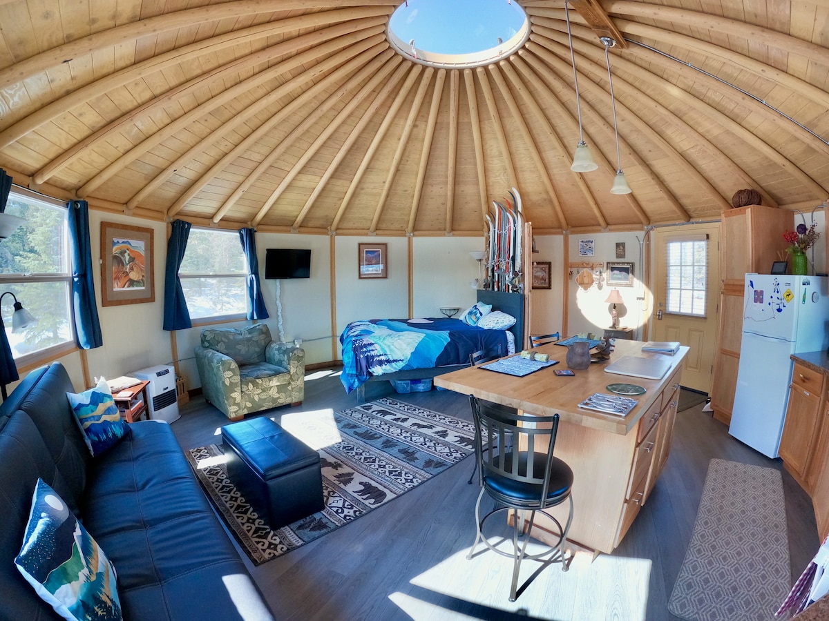 Ova jurta od 6 metara je savršena za one koji posećuju park Denali, žele pun pogled na Denali i imaju pogled od 360 stepeni na ništa osim na planine, reku i šumu! Jurta je udaljena samo 29 kilometara od ulaza u park i opremljena je električnom energijom, šporetom za kuvanje na propan, svetiljkama, grejanjem za uređaje za regulaciju temperature, peći na drva i drvima za kupovinu (10 USD po paketu). Pošto ste uzdignuti, možete da prošetate kroz vrata do sjajnog pogleda, a ako je vedro, možete da uživate u punom pogledu na najvišu planinu u Severnoj Americi!