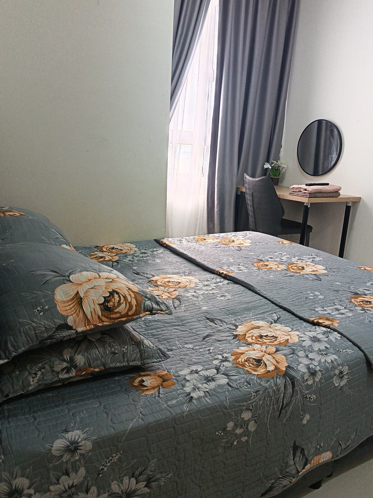 Dobro došli! Naš dom je uglavnom dizajniran za kraće boravke i zaustavljanja na aerodromu. Soba je čista, minimalistička i praktična, sa svom osnovnom opremom (krevet, tuš-kada, klima-uređaj, Wi-Fi). 🔹 Lokacija: Udaljeni smo samo 15 minuta vožnje od KLIA-e, u sklopu zaštićenog stambenog kompleksa. To ga čini pogodnim za goste u tranzitu. 🔹 Najprikladnije za: • Gostima je potrebno noćenje prije/poslije leta ✈️ • Putnici koji preferiraju jednostavan, jeftin i čist smještaj.