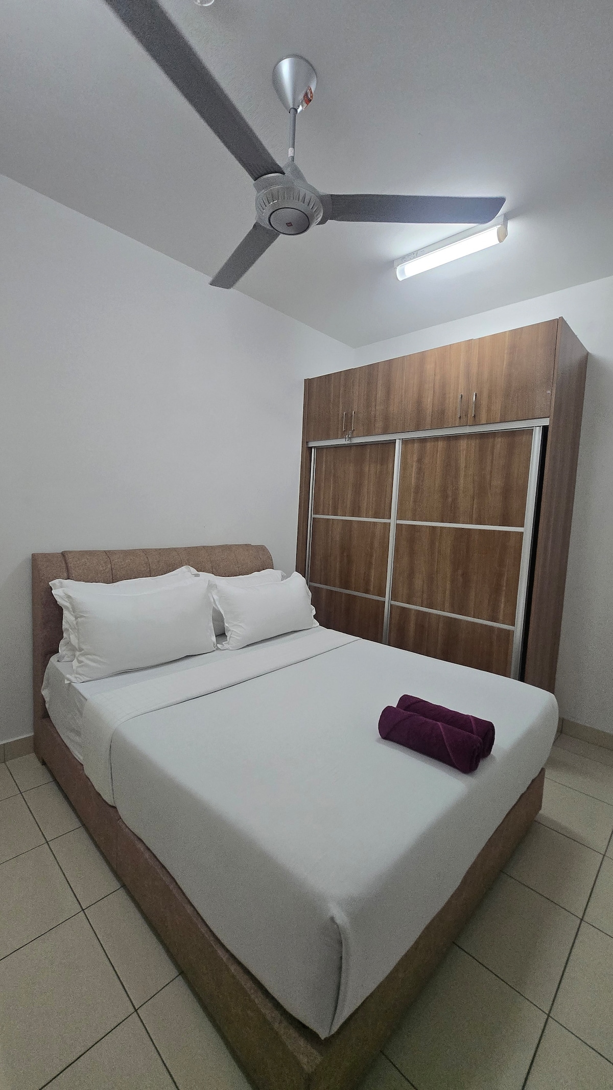 E. R Homestay by Alanis @ KLIA Sepang je miran dom za vas. Nalazi se u centru Kota Vorisana. Udaljen je oko 7 minuta vožnje do stanice KLIA, KLIA2 i 3 minuta do stanice Erl Salak Tinggi. E.R Homestay vam nudi smještaj prikladan za porodice sa kompletnim sadržajima. 2 spavaće sobe sa bračnim krevetom u glavnoj spavaćoj sobi i krevetom za jednu osobu u spavaćoj sobi 2. Dodatni dušek je obezbeđen u glavnoj spavaćoj sobi. Jedinica je klimatizovana u dnevnom boravku, glavnoj spavaćoj sobi i spavaćoj sobi 1.