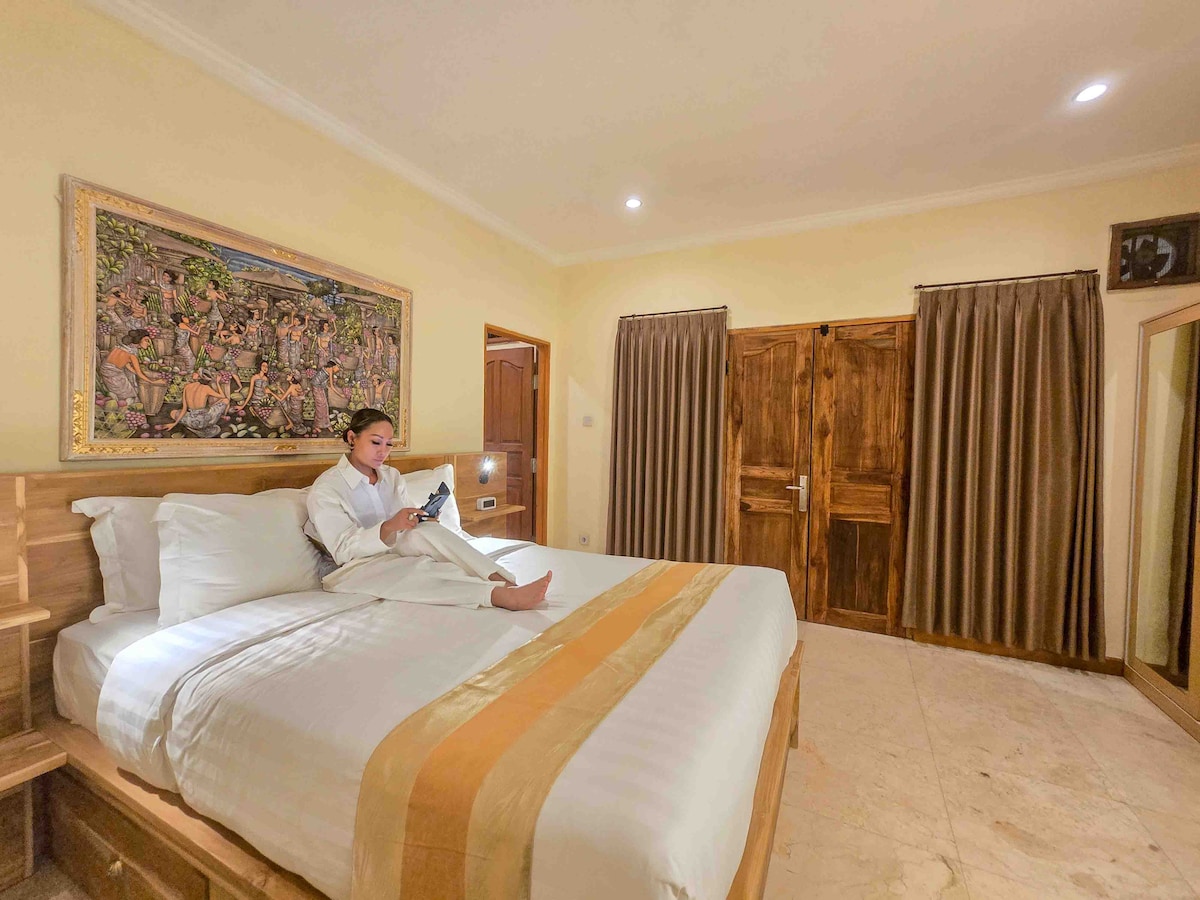 Mala kuća se nalazi u srcu Kute. Pješačka udaljenost do plaže Kuta, restorana, tržnih centara, umjetničke radnje, praonice veša i mnogih drugih. Dnevna soba polu otvorena, Kuhinja sa standardnim priborom za kuvanje, sve sobe sa klima uređajem i toplom/hladnom vodom. Naše osoblje može da čisti kuću svaki dan, a vi se samo opustite i uživajte u odmoru. Nikada nećete zaboraviti uspomene u ovom jedinstvenom smeštaju.