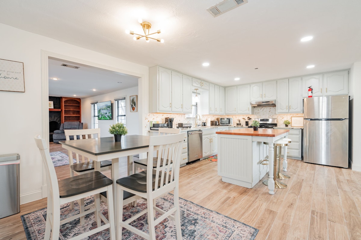 Šarmantni bungalov u centru grada i doživite jedinstven smještaj. Potpuno renoviran 2023. godine, prelijepo je uređen sa pažnjom posvećenom detaljima. Opustite se u eklektičnom enterijeru ili napolju za tišinu na terasi u ograđenom dvorištu. Lokacija? Volimo da kažemo „parkirajte automobil i zaboravite na to!” Bićete smješteni nedaleko od svega u živopisnom centru Dentona, uključujući sve šoping, restorane, noćni život na trgu, Hikori St, Ouk St i kompleks Industrial St.