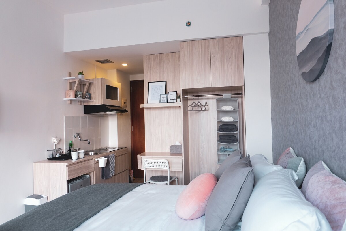 Moderni studio apartman sa pogledom na planine Merapi - strateška lokacija sa kompletnim sadržajima! Opremljen brzim Wi-Fi mrežom, 43-inčnim Smart TV-om sa Netflix-om, YT Premium-om, klima-uređajem, bojlerom i mašinom za pranje veša. Iz ovog stana se pruža zadivljujući pogled na planinu Merapi. Savršeno za opuštanje nakon učenja, rada ili istraživanja grada. Nalazi se u blizini UGM-a, tržnih centara, restorana i javnog prevoza, što ga čini idealnim izborom za poslovne putnike, studente ili turiste.