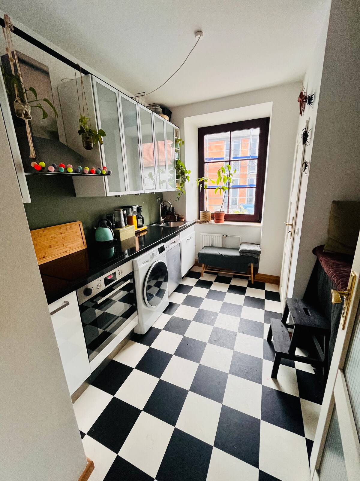 Okolina je puna odličnih restorana i kafića, a engleska bašta/ reka iSAR je udaljena samo nekoliko metara od stana. Vreme hoda do grada je 10 minuta. Stan: 1. karakteristike: WLAN, aparat za kafu, fen za kosu, bojler, sve što vam je potrebno 2. Kreveti: - 1 bračni krevet (160x200cm) - 1 kauč (80 x 200 cm) 3. Na raspolaganju je radni prostor, dodatna soba 4. balkon i sopstvena bašta 5. lift dostupan je 6. javni parking je moguć