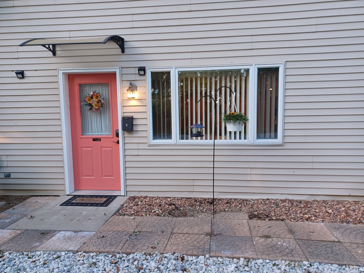 Boravite u našem renoviranom celom spratu na spratu sa šifrovanim privatnim ulazom koji možete da dolazite i odlazite kad god želite. Bračni krevet (širine 150-179 cm) u glavnoj spavaćoj sobi, bračni krevet (širine 125-149 cm) u drugoj spavaćoj sobi (može da se postavi 2 kreveca za mlade). Kupatilo sa kadom i tušem, TV soba sa Kuerig-om, mikrotalasnom rernom, mini frigom i pogledom na šumu. Opustite se na tremu. Kratka šetnja do sajmišta i staze Pumpkin Vine. U blizini mesta za jelo. Notr Dam je udaljen 45 minuta. Shipshewana -40 minuta. 60 milja do jezera MI. 3 sata vožnje do Čikaga.